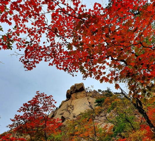 산 전체의 80프로가 물드는 단풍 절정시기는